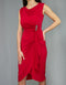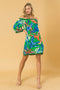 Vestido semi casual asimétrico estampado floral tropical lazo ajustable en la cintura sin mangas