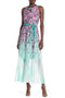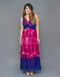 Vestido semi formal maxi asimétrico sin mangas disponible en fresa y verde